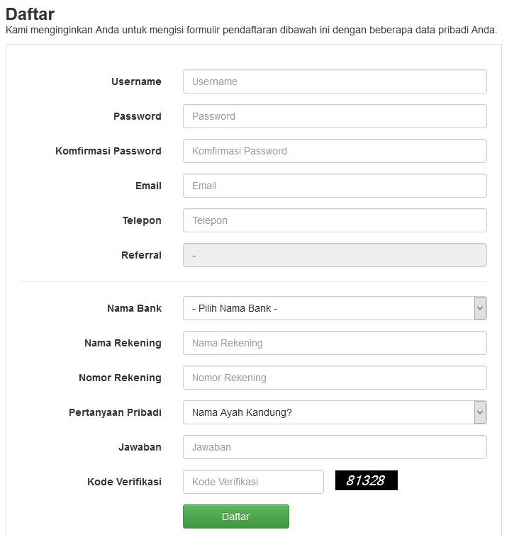 4. Kalau sudah mengisi semua tinggal klik kolom daftar dan jangn lupa masukan kode verifikasi ya