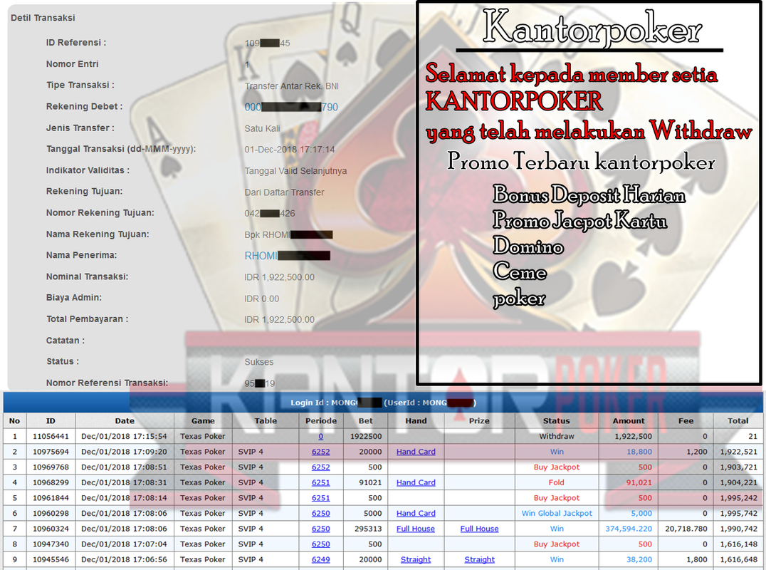 Ulasan Prediksi - Disini adalah tempat dimana bukti - bukti pembayaran dari kantorpoker kepada member setia mereka yang telah menang dan melakukan withdraw/penarikan dana. Semoga akan menjadi semakin hoky bermain di Kantorpoker. Dan terus mendapatkan bonus bonus dari Kantorpoker.