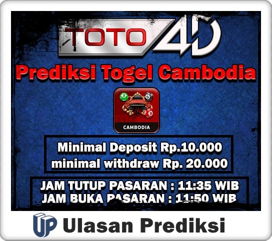 Ulasan Prediksi - Prediksi Togel Cambodia Hari Ini Kamis 17 Januari 2019. Prediksi yang diberikan dalam situs ini adalah prediksi togel yang sudah di racik sedemikian rupa. Prediksi hari ini berpatokan pada hasil draw dari Cambodia Pools atau Keluaran Cambodia pada hari kemarin. Angka ini juga akan digabungkan dengan rumus yang telah kami buat dan perhitungkan dengan sangat rinci.